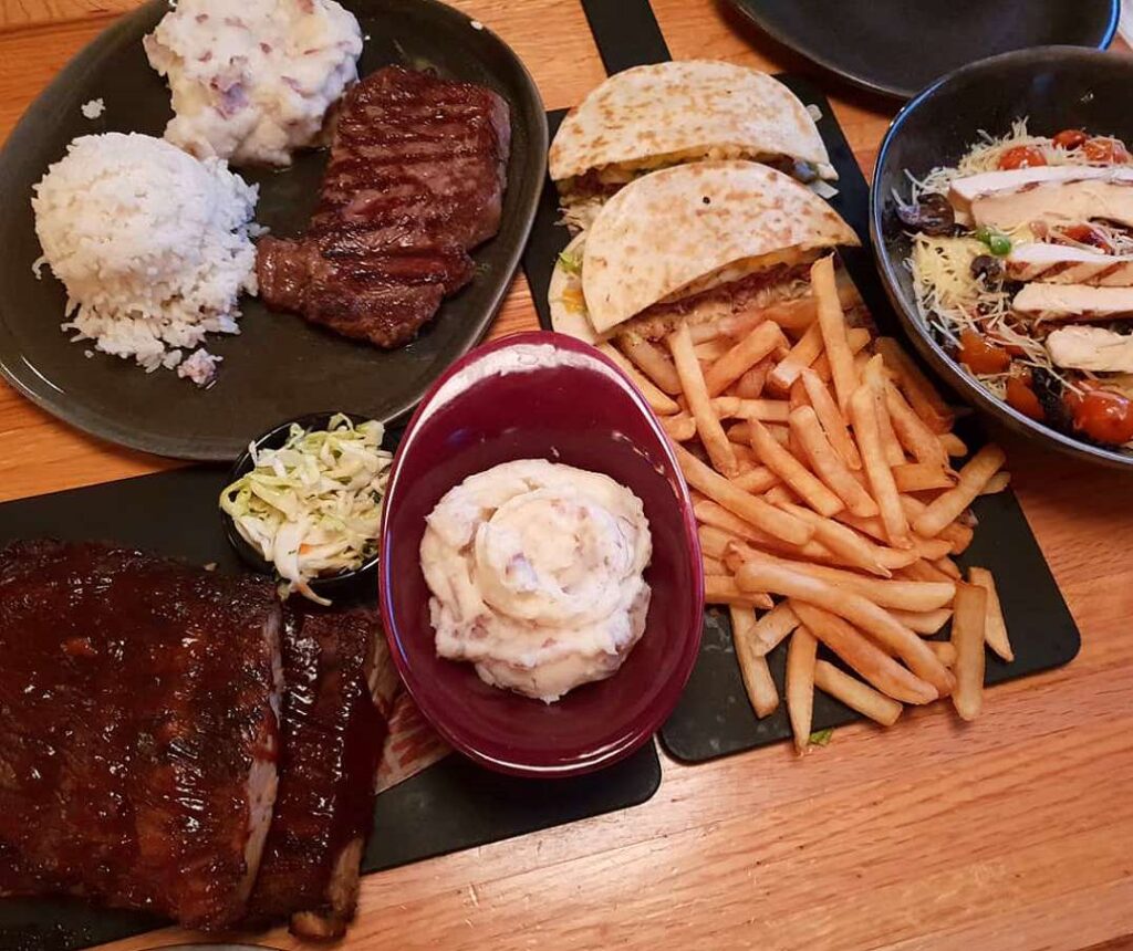 ステーキ、ハンバーガー、パスタは、さまざまな味のお客様にご利用いただけます。