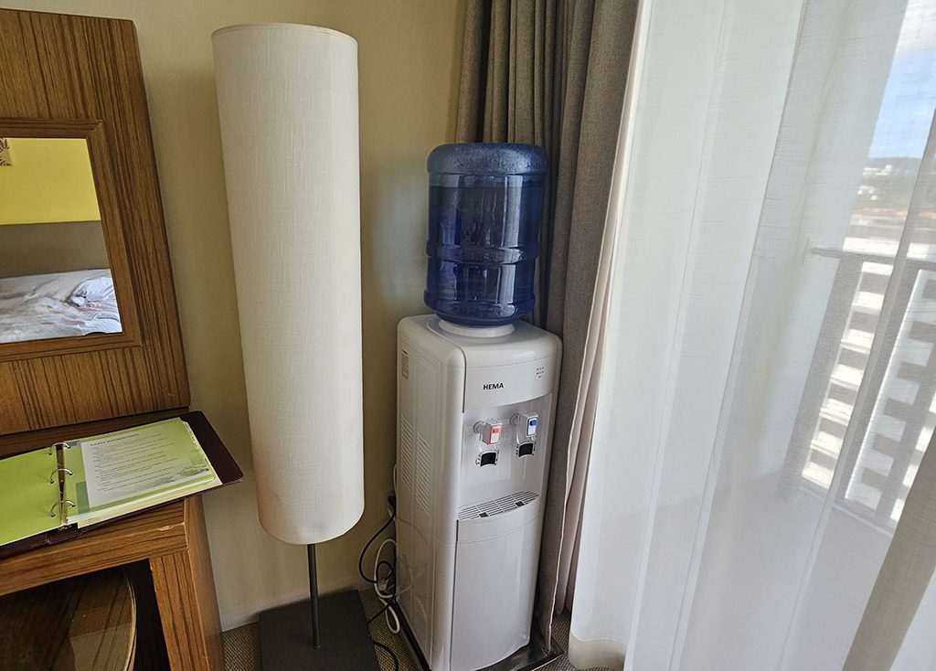 이건 투숙객들에게 정말 큰 장점이에요! 모든 객실에 정수기가 비치되어 있거든요. 차가운 물과 뜨거운 물을 언제든 사용할 수 있어서, 아침 커피를 내리거나 어린 자녀의 분유를 만드는 데 정말 편리할 거예요.