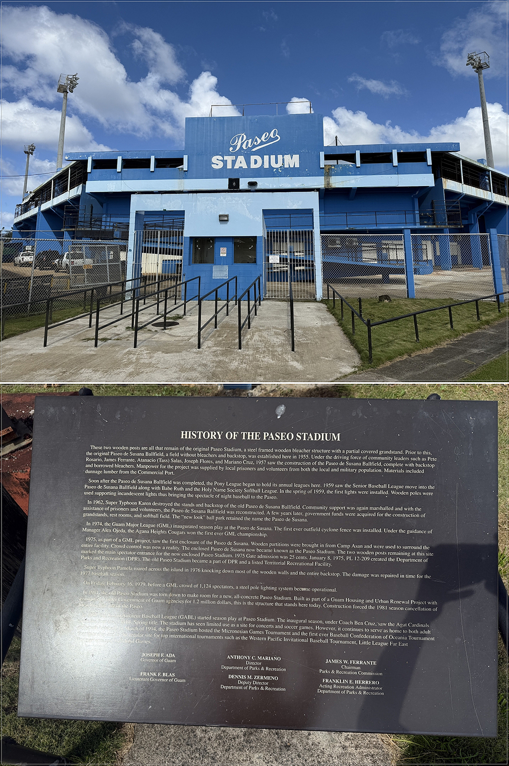 괌에서 가장 큰 야구장인 파세오 스타디움입니다.