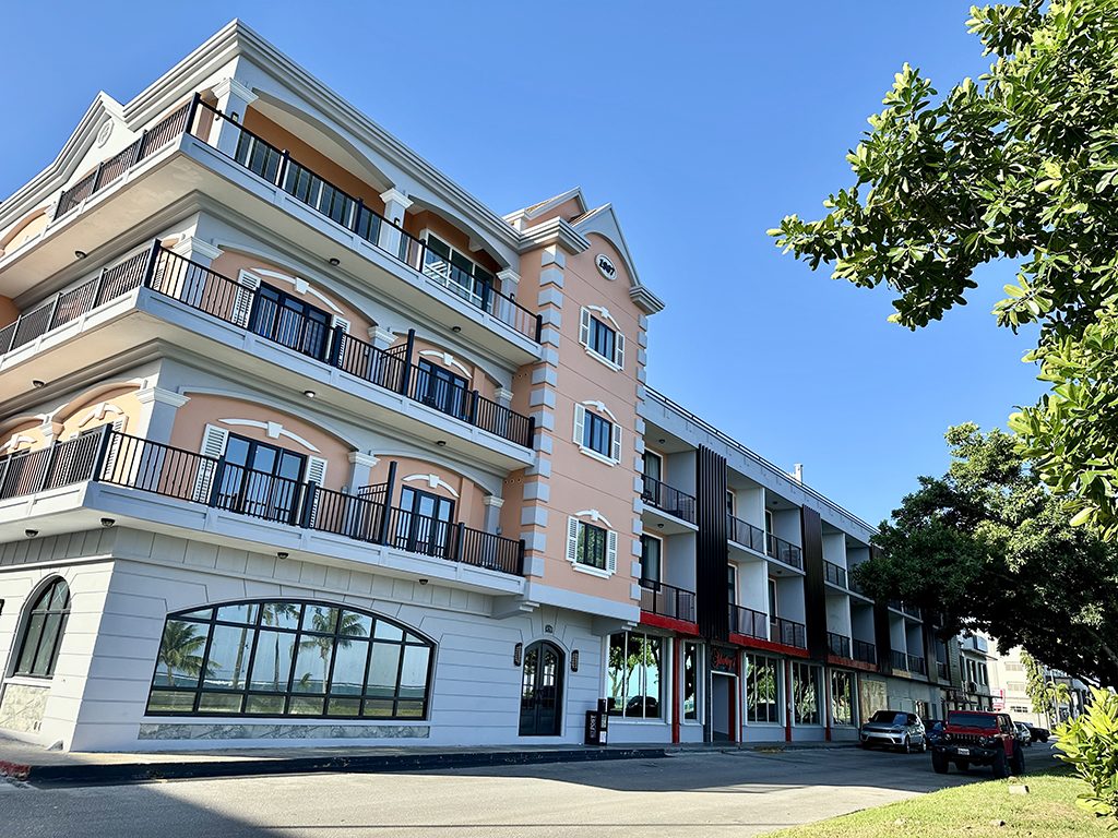 타몬에서 하가냐로 차를 몰고 가면서 차모로 빌리지를 지나, 해안선을 따라 잠시 드라이브를 즐기면 셔리의 커피샵에 도착합니다. 더 레지던스 마리나 베이 괌(The Residences Marina Bay Guam) 건물 1층에 위치하고 있으며, 위층은 주거 공간입니다.