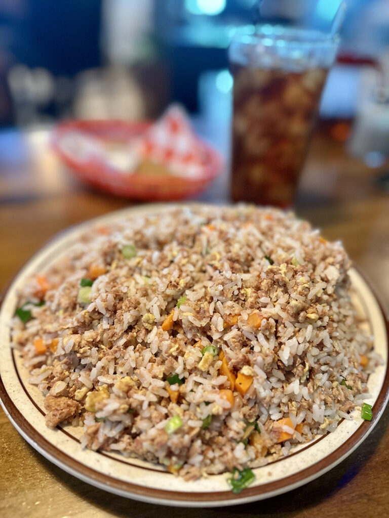그 중 하나는 콘드 비프 프라이드 라이스(Corned Beef Fried Rice) 입니다. 약 30cm 크기의 큰 접시에 푸짐하게 담겨 나옵니다.
