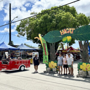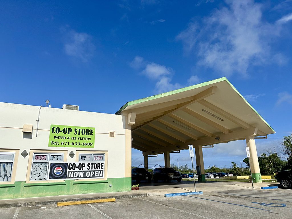 그다음 신호등을 지나면 매주 토·일요일 아침에 열리는 플리마켓 장소가 왼편에 보입니다. 평일에는 이 건물 안에 있는 미니 슈퍼마켓에서 괌산 채소와 달걀 등을 판매하며, 월~금 오전 8시부터 오후 7시까지 운영됩니다.