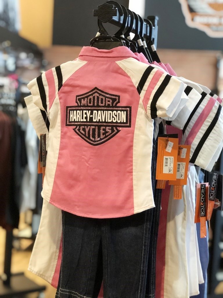 上圖是約12個月大的童裝,即使不是Harley-Davidson的粉絲,如果收到這種可愛的禮物,也一定會很高興吧。